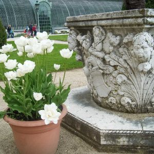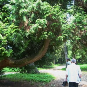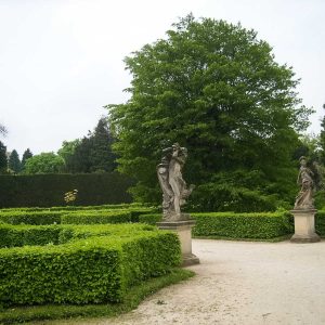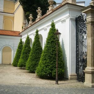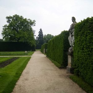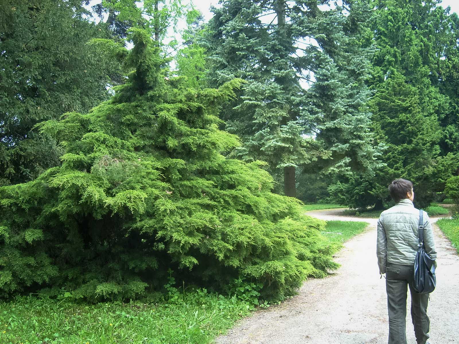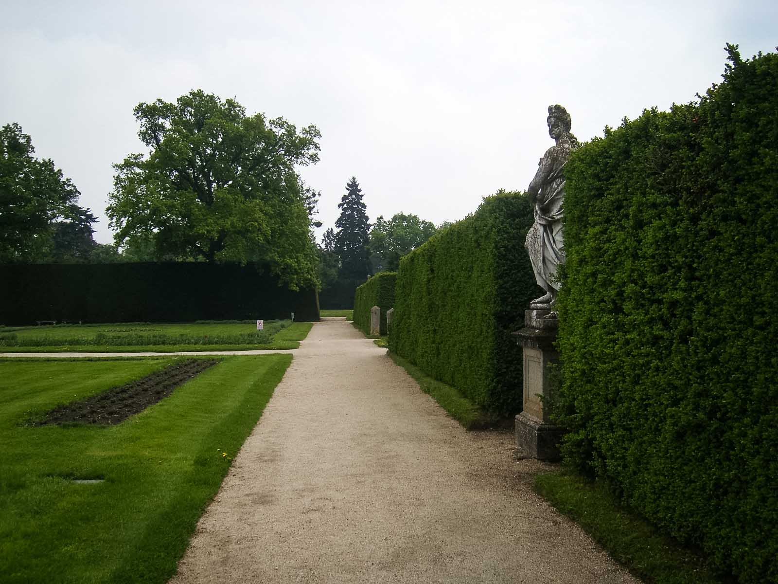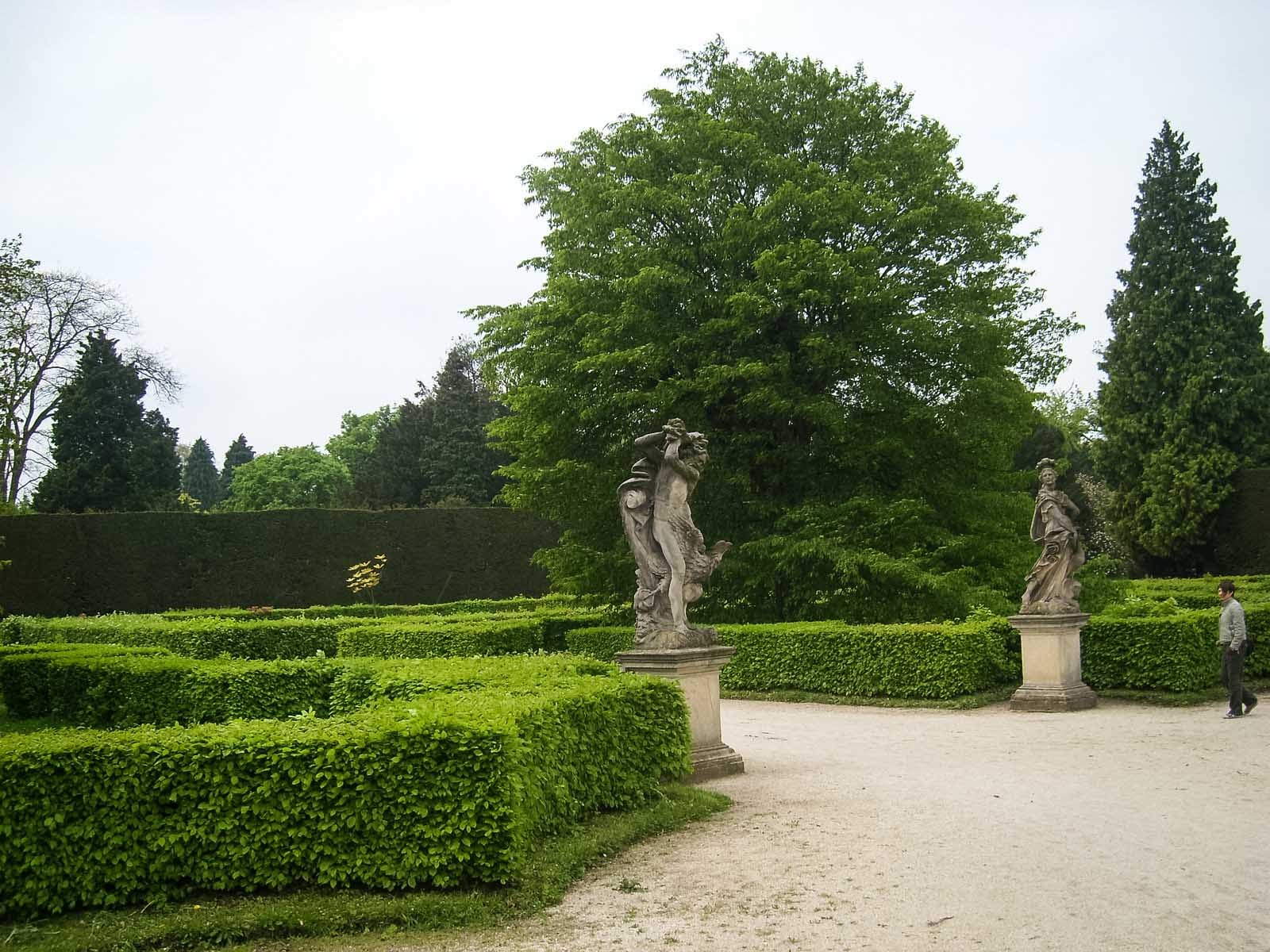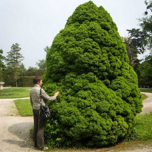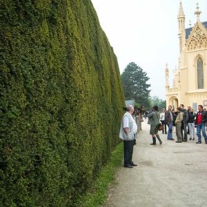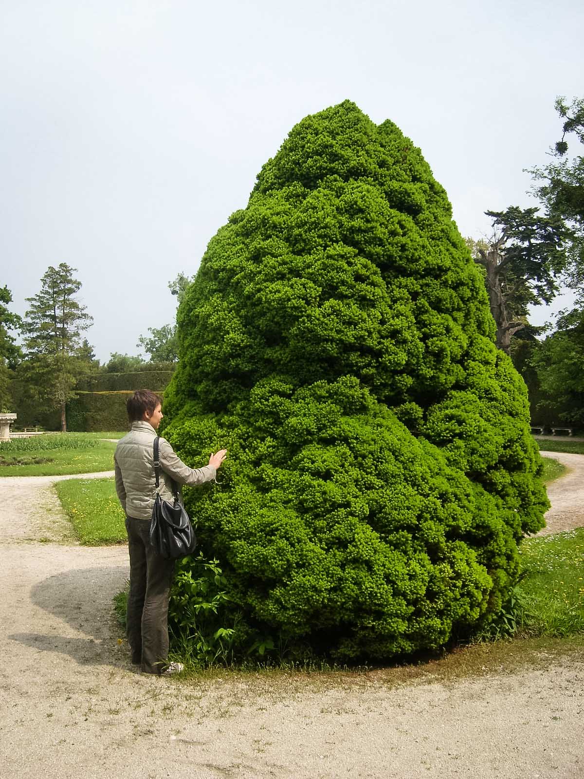 Размеры топиарных форм просто поражают – стены достигают 6 метров, отдельные пирамиды – 10-15 метров. Невольно подсчитываешь, сколько лет и труда нужно, чтобы вырастить нечто подобное у нас. В общей картине регулярного парка искуссно используются и природные формы, например, ели разных видов – от гигантских до «карликовых» канадских.
