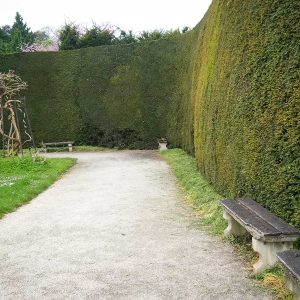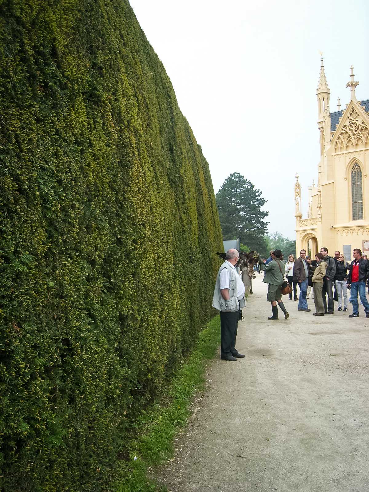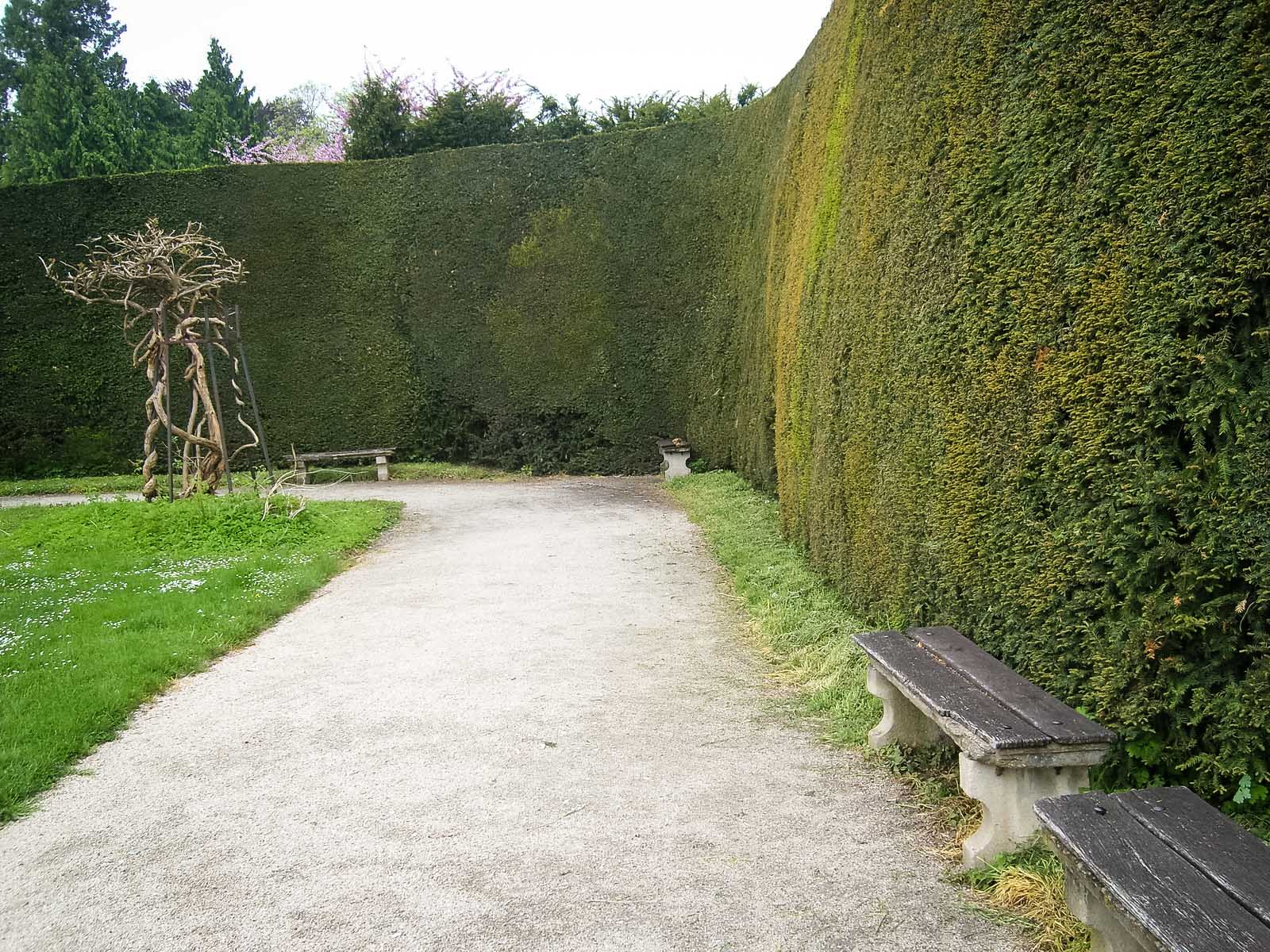 Обратите внимание – многие из этих многометровых изгородей – из самшита. В некоторых местах видны выпады, и это очень интересно – посмотреть внутреннюю структуру изгороди. Ширина изгороди тоже впечатляет.