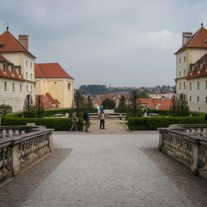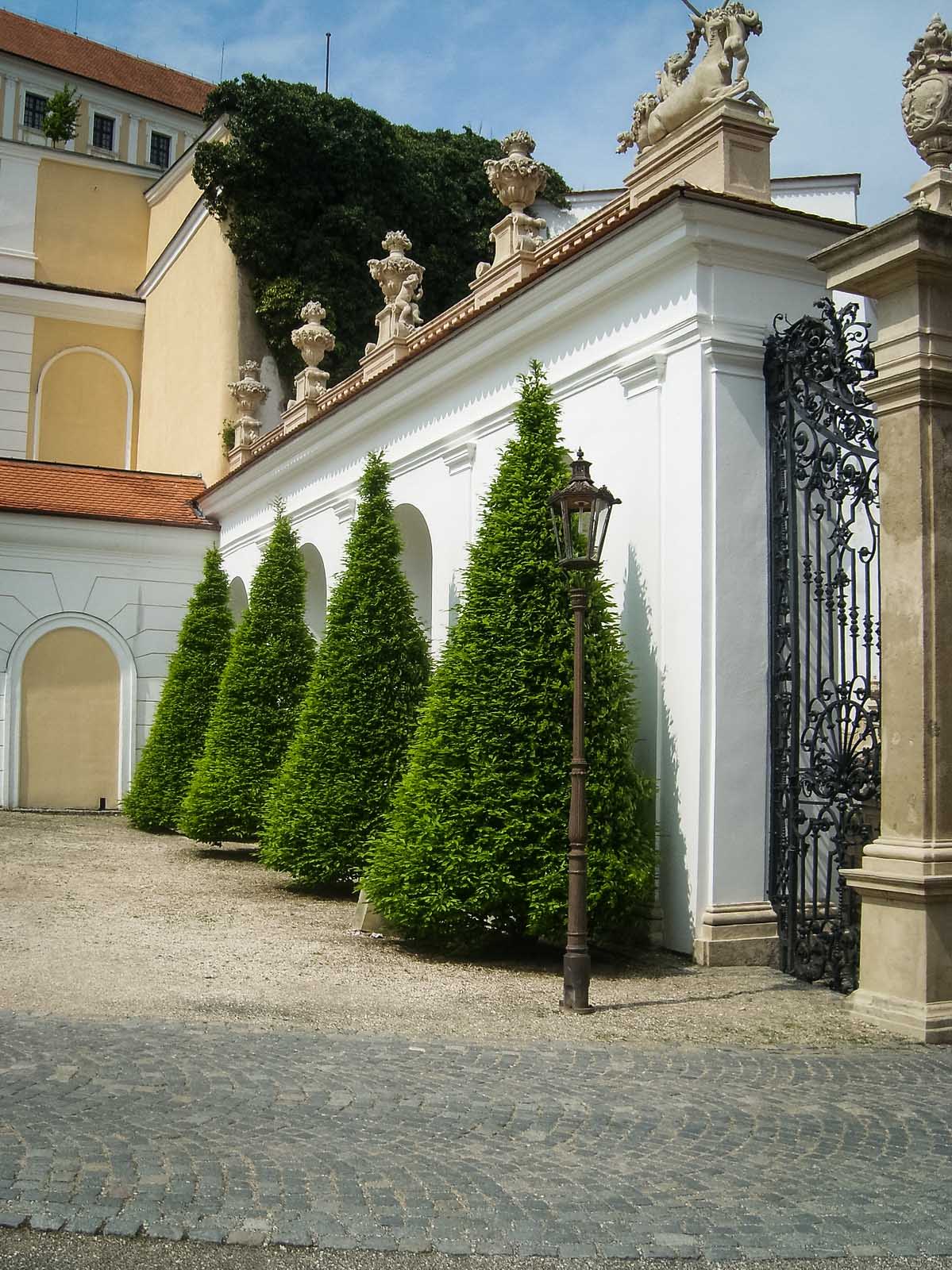 Если Леднице являлся своего рода загородной дачей семьи Лихтенштейнов, то замок Валтице был их основной резиденцией. Лихтенштейны всё делали с поистине королевским размахом, и свое родовое поместье решили выстроить в модном тогда стиле барокко. Роскошь его внешней отделки и внутреннего убранства удивительным образом гармонируют друг с другом, не переходя тонкой грани, отделяющей высокий стиль от вычурности. Даже внешне оно выглядит более камерным. Перед дворцом – небольшой внутренний двор, разворотный круг оформлен стриженными грабами и мандаринами в кадках. За парадным фасадом сразу начинается пейзажный парк.