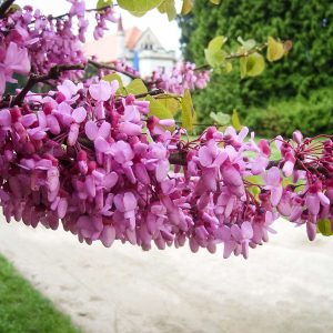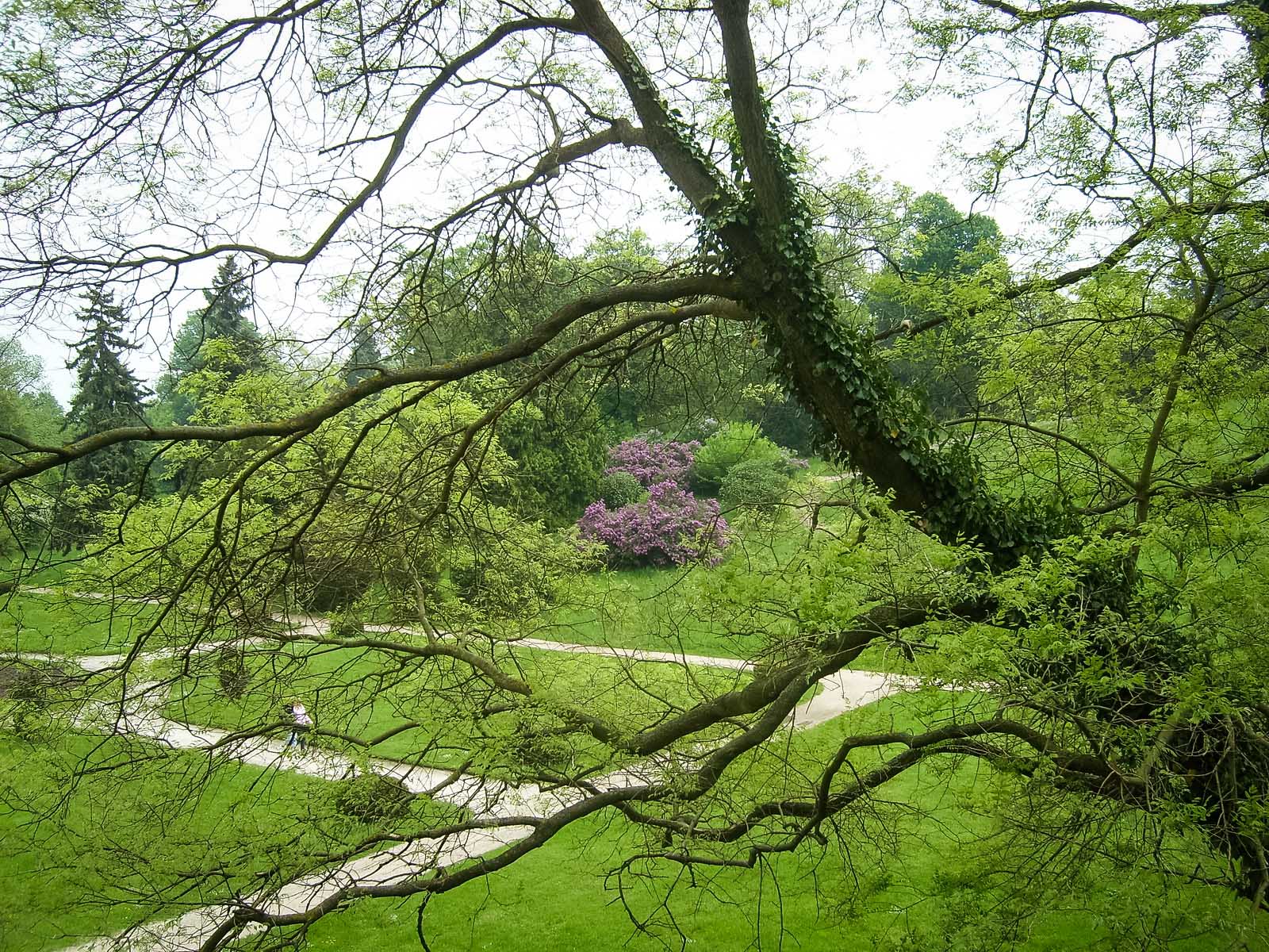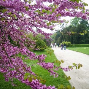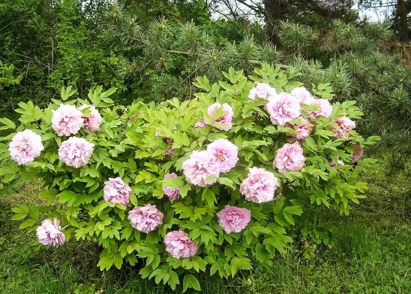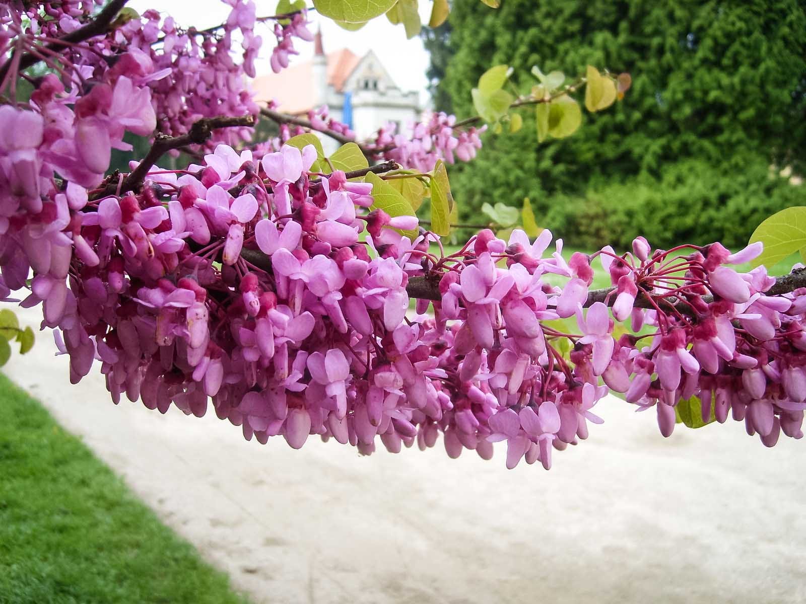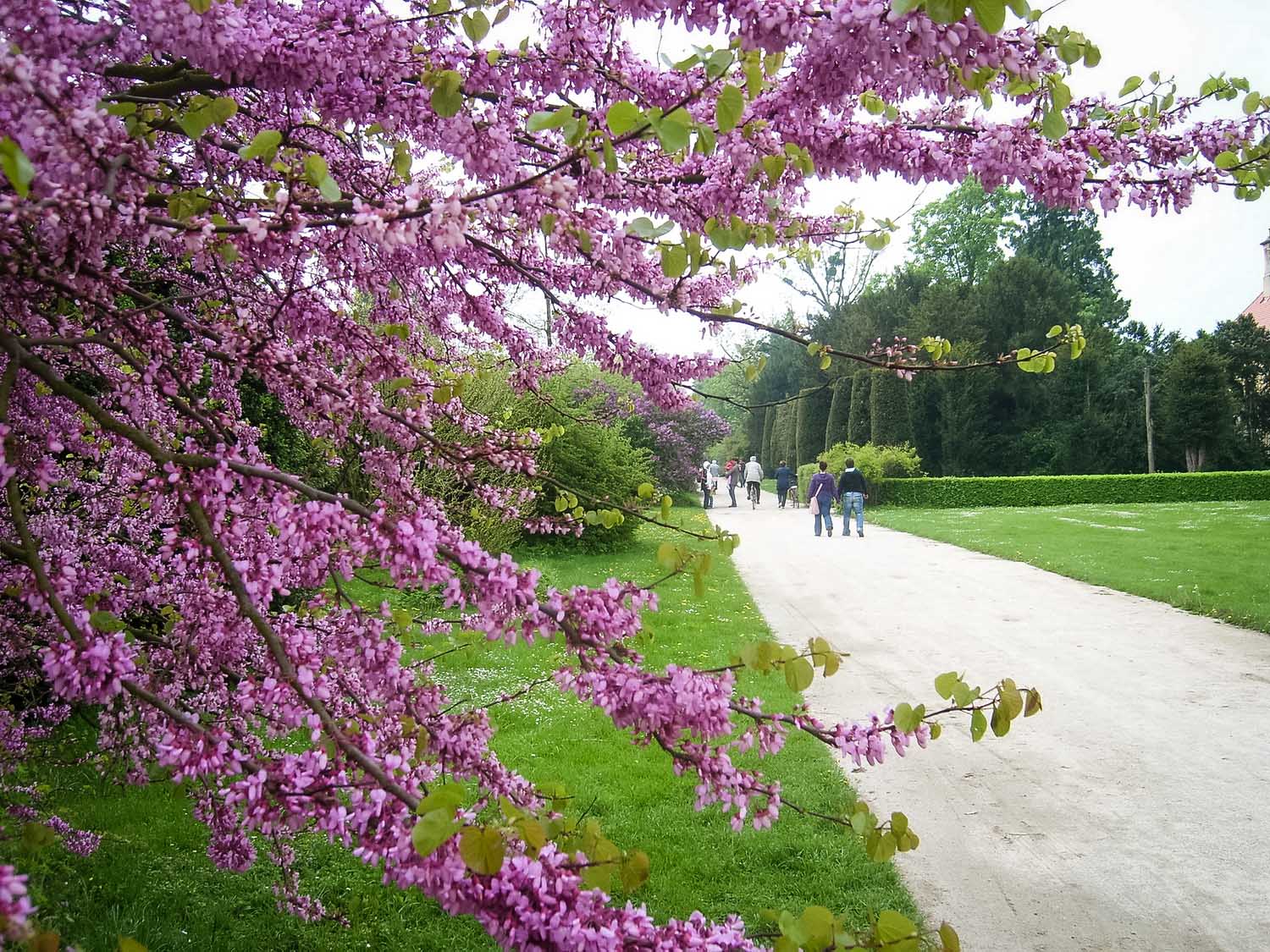 Прямо на входе нас встретили цветущие древовидные пионы и церцис, или рожковое (иудино) дерево.