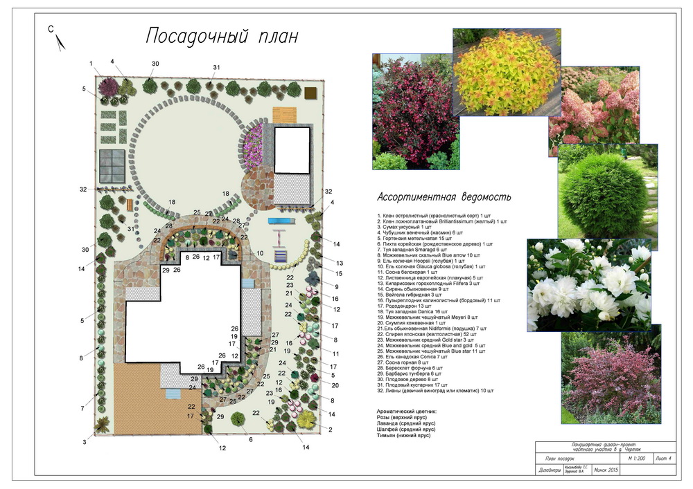 Еще один важный момент – ландшафтный дизайнер представляет всю концепцию оформления участка, он ее подумывает на начальных этапах проектирования и под эту концепцию подбирает растения, учитывая множество факторов. Как растения будут сочетаться между собой в композиции в различные сезоны года, как они будут взаимодействовать с точки зрения экологии. Какое дерево будет акцентом, а какое в составе группы. Какие растения помогут скрыть недостатки участка и подчеркнуть достоинства и.т.д.