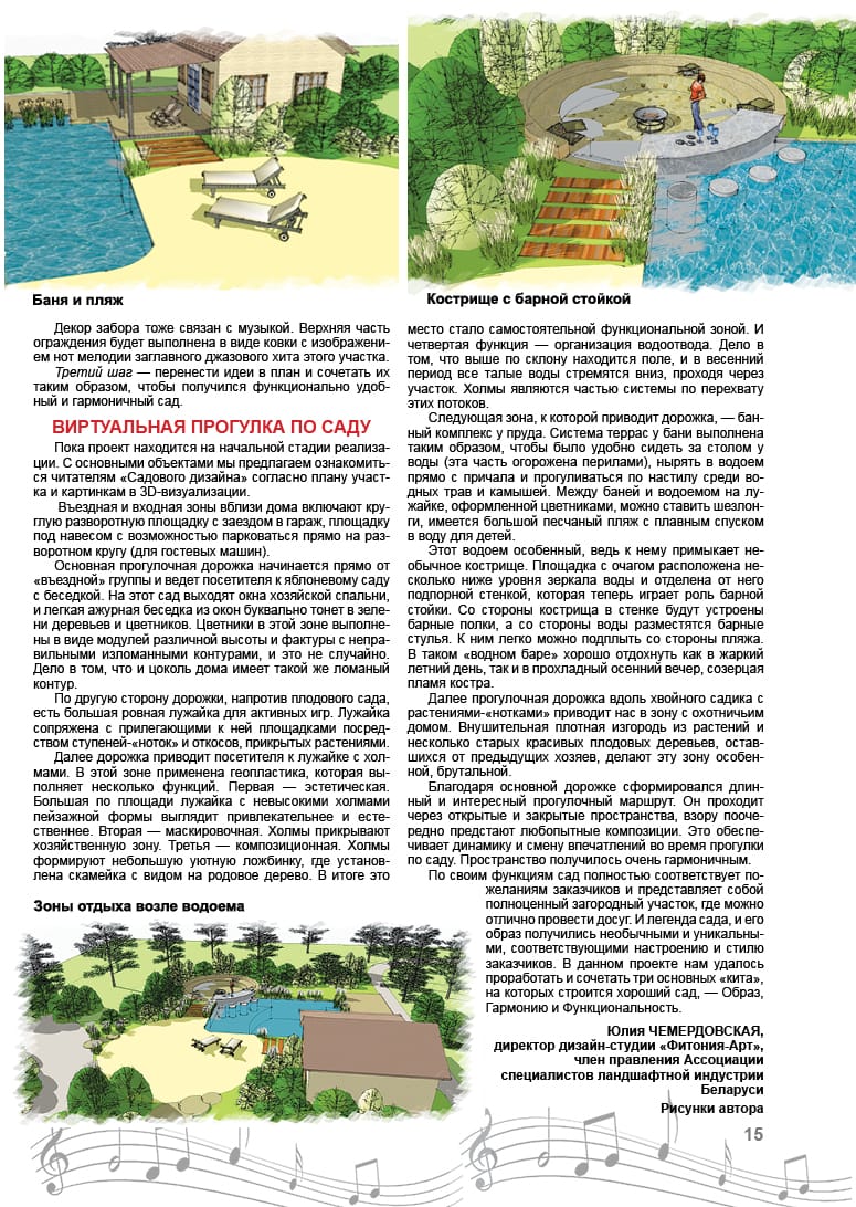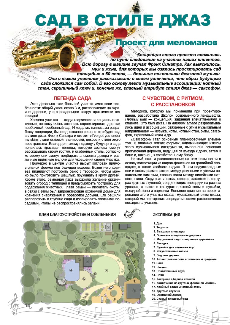 Концепция этого проекта сложилась по пути следования на участок наших клиентов. Всю дорогу в машине звучал Фрэнк Синатра. Как выяснилось, муж и жена, для которых мы взялись проектировать сад площадью 60 соток, — большие поклонники джазовой музыки.