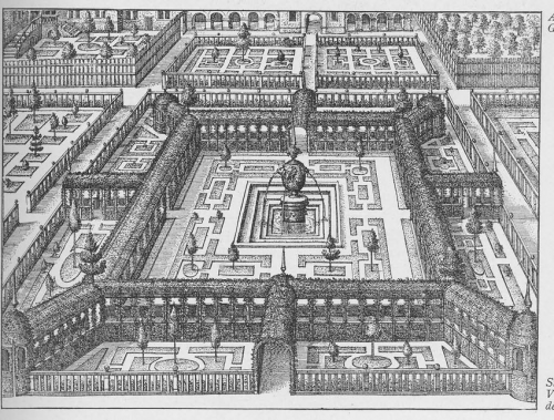 Ренессансный сад Х.Вредермана де Вриса – это архитектурный сад. На гравюрах художник как бы «выстраивает» пространство сада: трельяжи и аркады формируют комнаты, салоны и кабинеты. Эти пространства составляют основу планировки сада.