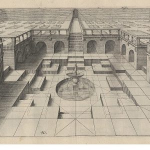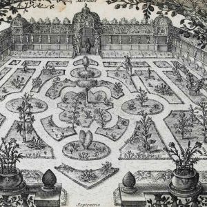 Архитектонику сада на гравюрах художника задавало несколько элементов: трельяжи и растительные конструкции, топиарные формы.
